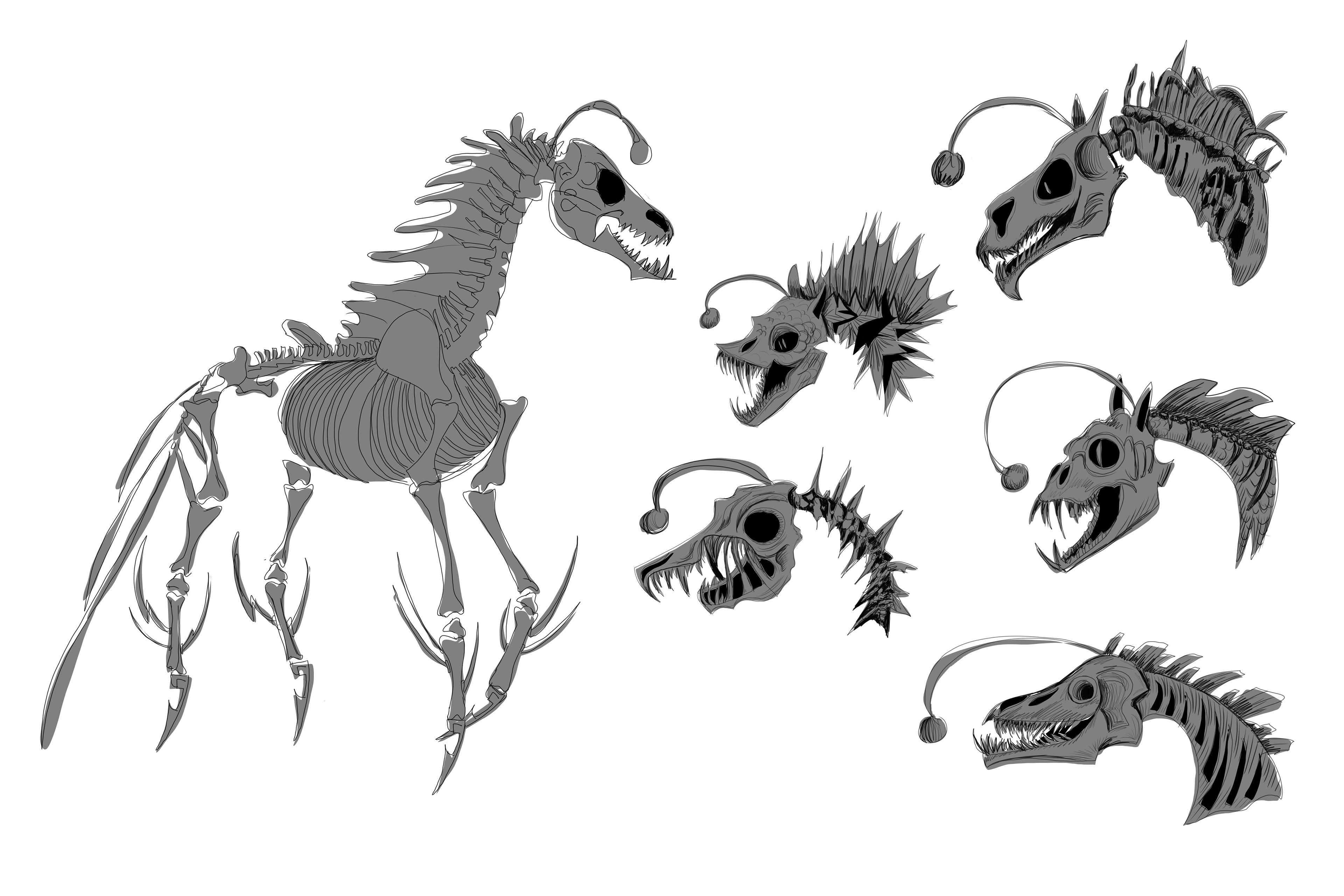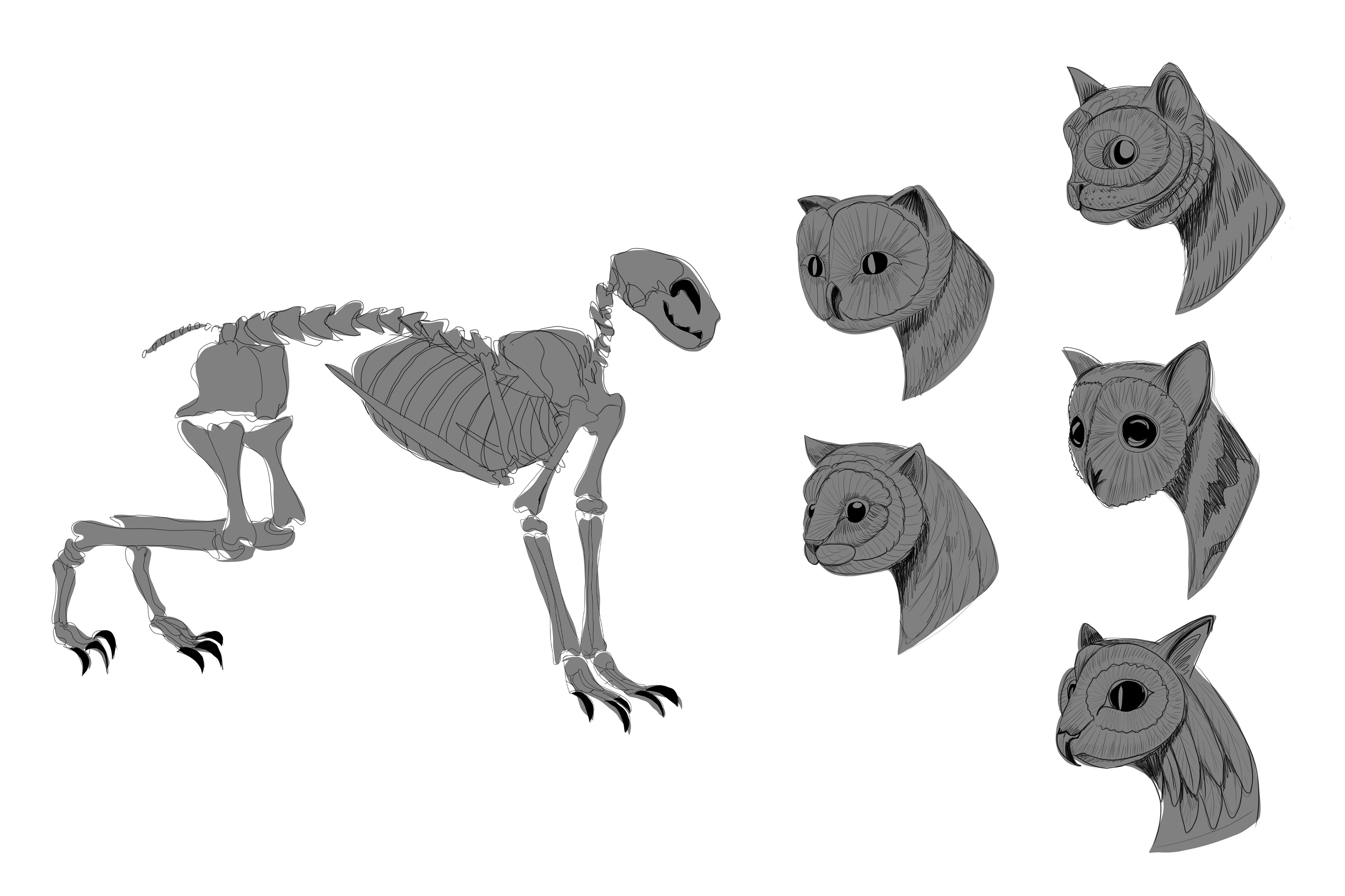 : Create Predator and Prey taking two different creatures and making a mash up, creating their own skeletons before adding skin. Predator is a Horse-Angler Fish. Prey is Cat-Owl