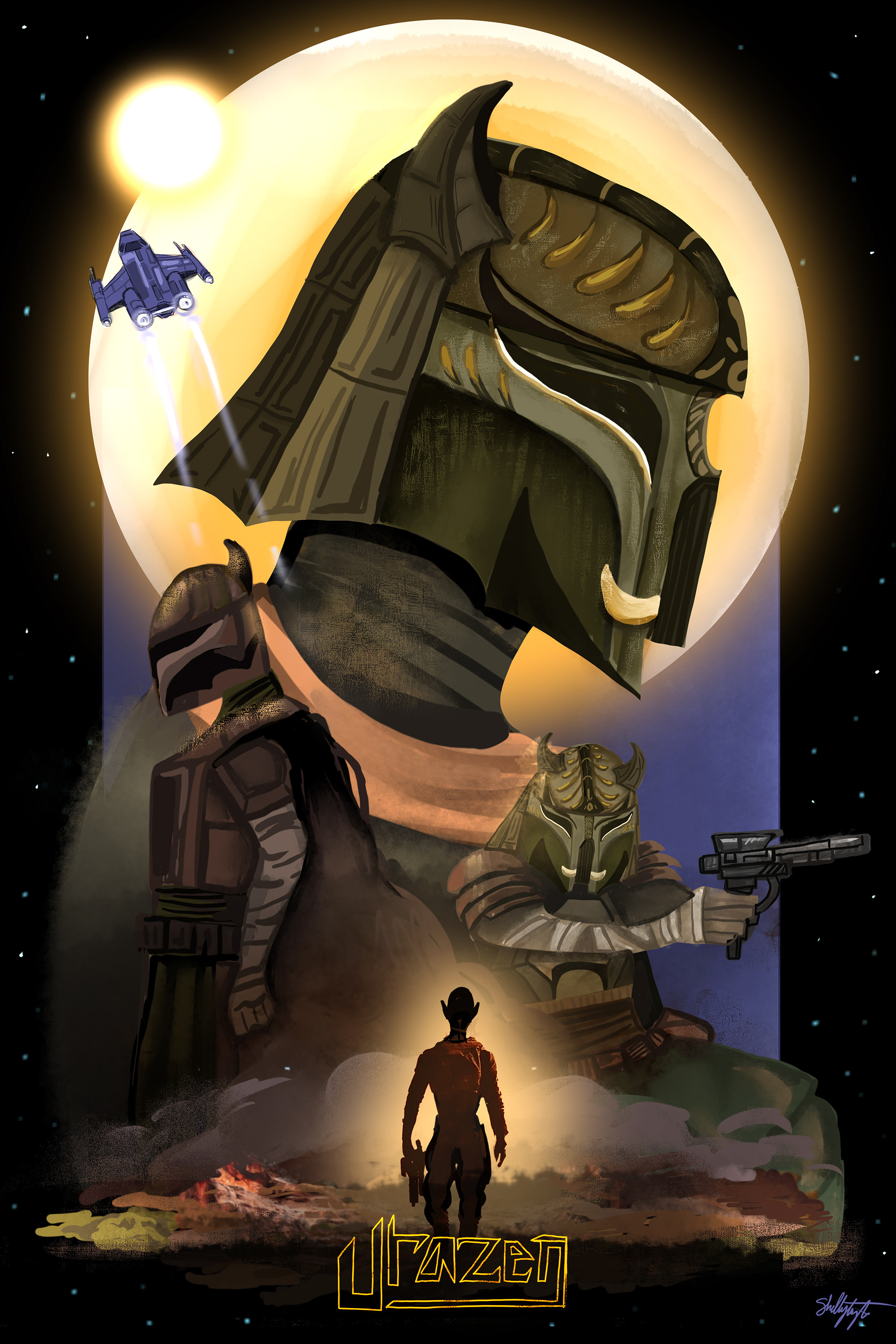 For this project, I was challenged to create an entirely new world, building on an existing universe. Drawing inspiration from the Star Wars universe, I developed the Urazen a distinct subculture of the Mandalorians with their own traditions, aesthetics, and technologies.